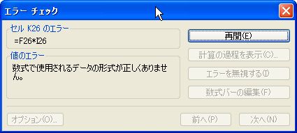 「數(shù)式で使用されるデータの形式が正しくありません」