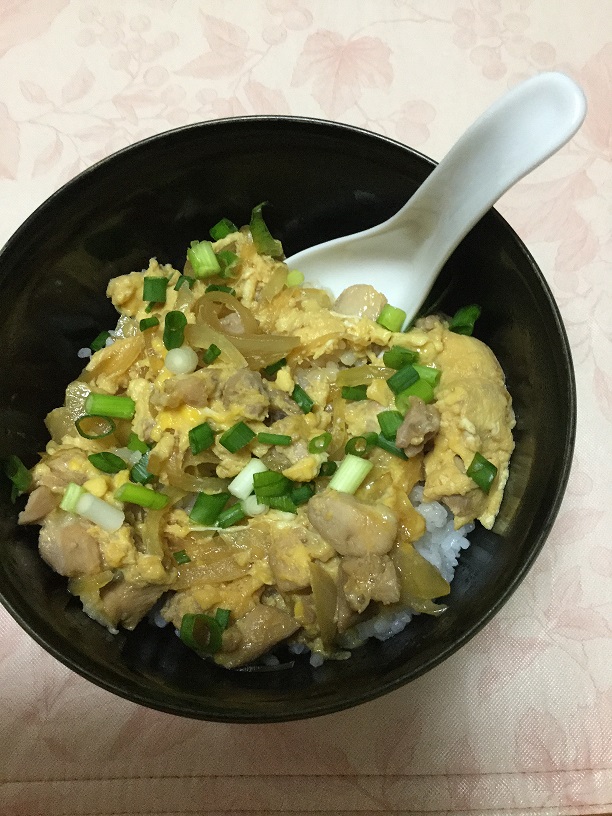 材料:鳥もも1/2枚、玉ねぎ1/4個、ネギ少々、卵2個