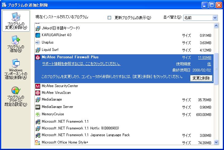 LiveUpdate 3.1 Symanetc Corporation=>削除