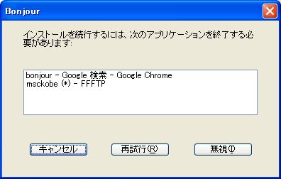 iTunes for Windows、Bonjour for Windows、QuickTime for Windows などのアップルソ