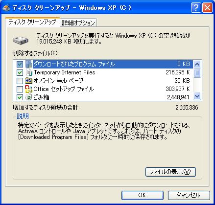 インターネット一時ファイルを削除する。