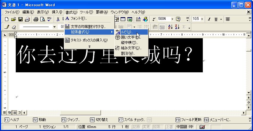 書式->拡張書式->ルビを選択します。