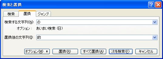 多次置換操作后,然后檢查和輸入修改。用置換還可以做刪除操作。比如說"である"置換空文字""可一口氣刪除全部"である"。