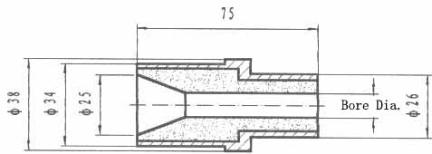 導(dǎo)入嘴不能單獨(dú)使用,必須和主嘴一起使用。它引導(dǎo)磨料進(jìn)入ノズル入口來(lái)降低磨損,因此主嘴和導(dǎo)入嘴一起使用將使主嘴的壽命得到延長(zhǎng),當(dāng)然主嘴也可以單獨(dú)使用。