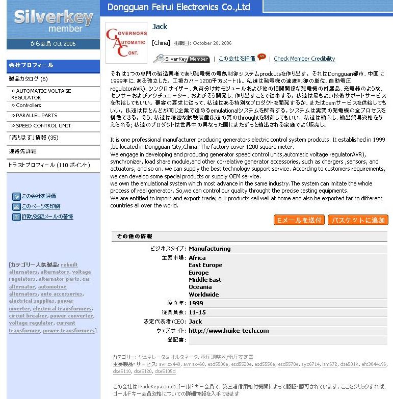 それは1つの専門の製造業(yè)者であり発電機の電気制御システムprodcutsを作り出す。それはDongguan都市、中國に1999年に、ある確立した。 工場カバー1200平方メートル。私達は発電機の速度制御の単位、自動電圧regulatorAVR)、シンクロナイザー、負荷分け前モジュールおよび他の相関関係な発電機の付屬品、充電器のような、センサーおよびアクチュエーター、およびそう開発し、作り出すことで従事する。 私達は最もよい技術サポートサービスを供給してもいい。顧客の要求に従って、私達はある特別なプロダクトを開発するか、またはoemサービスを供給してもいい。私達はほとんどが同じ企業(yè)で進めるemulationalシステムを所有する。システムは実質の発電機の全プロセスを模倣できる。そう、私達は精密な試験裝置私達の質のthroughtを制御してもいい。 私達は輸入し、輸出貿易資格を與えられる; 私達のプロダクトは世界中の異なった國にまたずっと輸出される家庭でよく販売し。