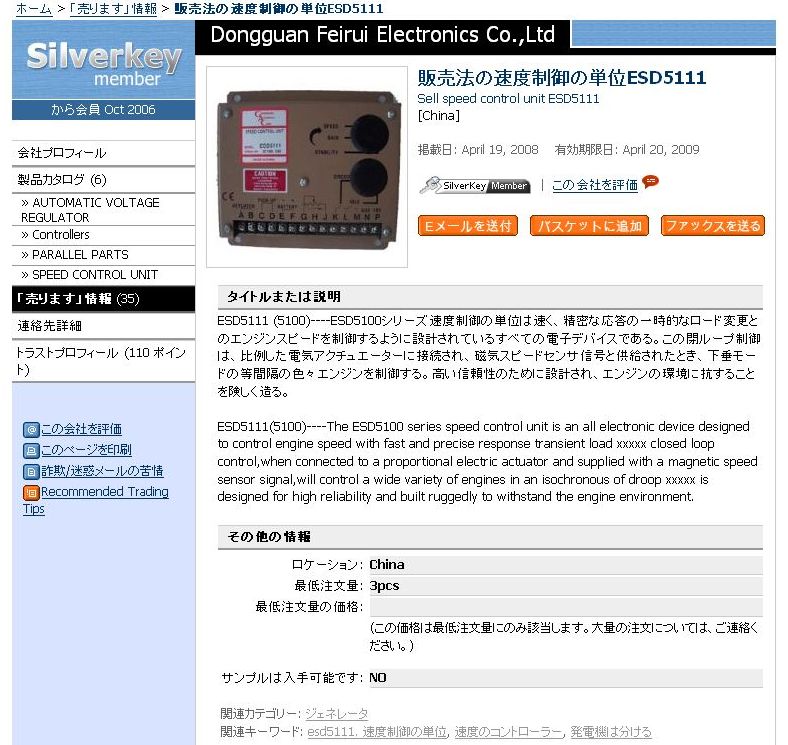 ESD5111 (5100)----ESD5100シリーズ速度制御の単位は速く、精密な応答の一時的なロード変更とのエンジンスピードを制御するように設計されているすべての電子デバイスである。この閉ループ制御は、比例した電気アクチュエーターに接続され、磁気スピードセンサ信號と供給されたとき、下垂モードの等間隔の色々エンジンを制御する。高い信頼性のために設計され、エンジンの環(huán)境に抗することを険しく造る。