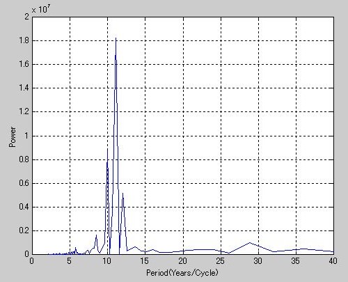 》 xlabel('Period(Years/Cycle)')