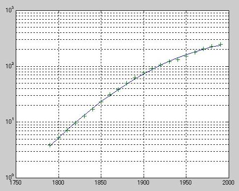 》 logp2 = polyfit(sdate,log10(pop),2);