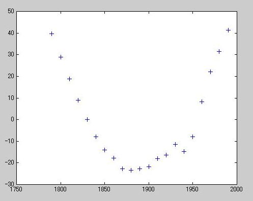 》 logres2 = log10(pop) - polyval(logp2,sdate);