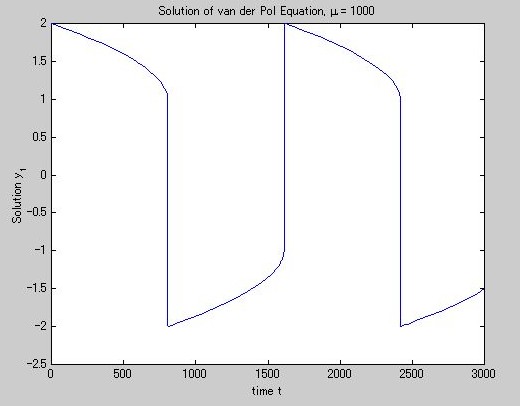 % When MU is 1000 the equation is in relaxation oscillation, and the