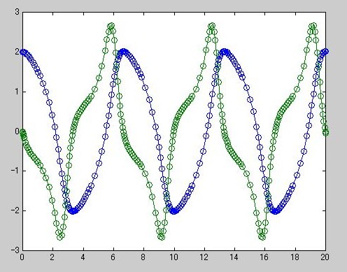 》 [t,y] = ode45('vdp1',[0 20],[2;0]);