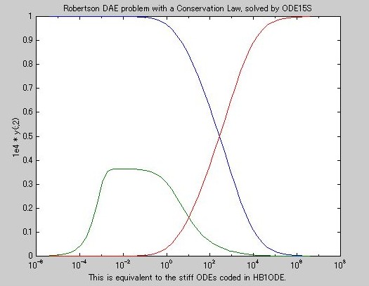 % The Robertson problem coded in HB1ODE is a classic test problem for