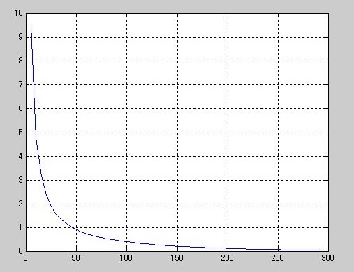 y = 0.5*csch(t*pi/300);